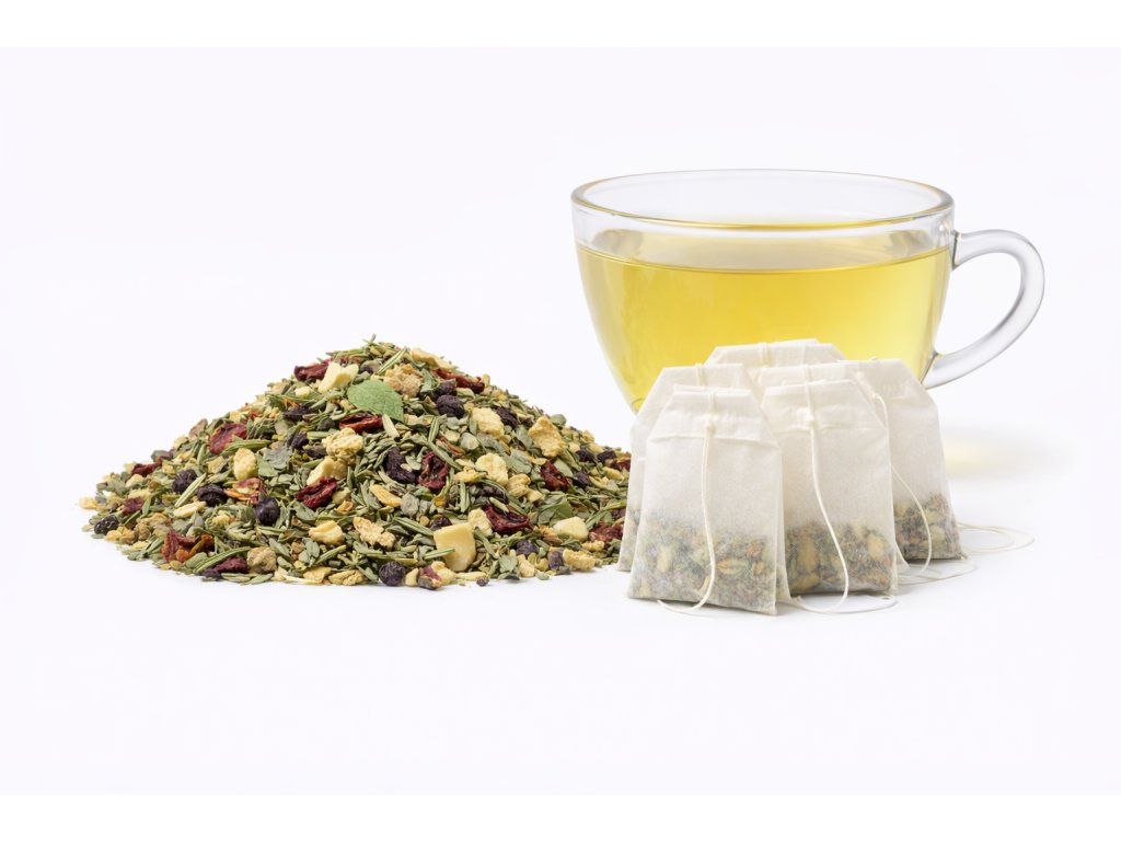 Další byliny – rozmarýn, šalvěj, jinan dvoulaločný a ibišek – dotvářejí plnost směsi a dodávají jí harmonii. Výsledkem je čaj, který osvěží tělo i mysl a hodí se do chvil, kdy potřebujete trochu energie navíc.