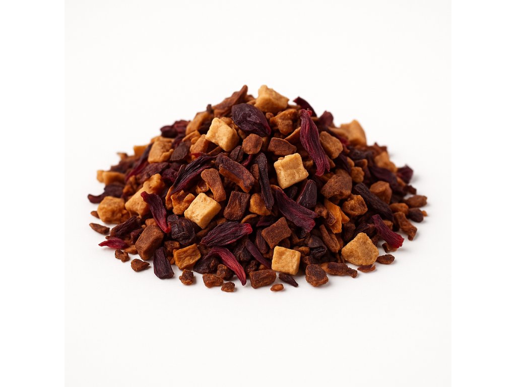 Jablečný koláč je čaj pro chvíle tepla a pohody. V jeho vůni najdete čerstvě pečená jablka, skořici a jemné rozinky. Základ tvoří ovoce a květy růže, slunečnice a měsíčku, které společně vytvářejí svátečně sladký, ale přirozený nápoj bez přidaného cukru a barviv.