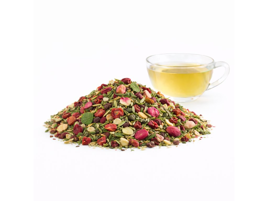 V nálevu se krásně propojuje bylinná svěžest s jemnou ovocností jablka a šípku. Kousky červené řepy dodávají směsi přirozeně plnější barvu a zakulacený dojem. Celý profil jemně uzavírá květinový dotek růže – okvětní lístky i poupata působí elegantně, ale neruší.