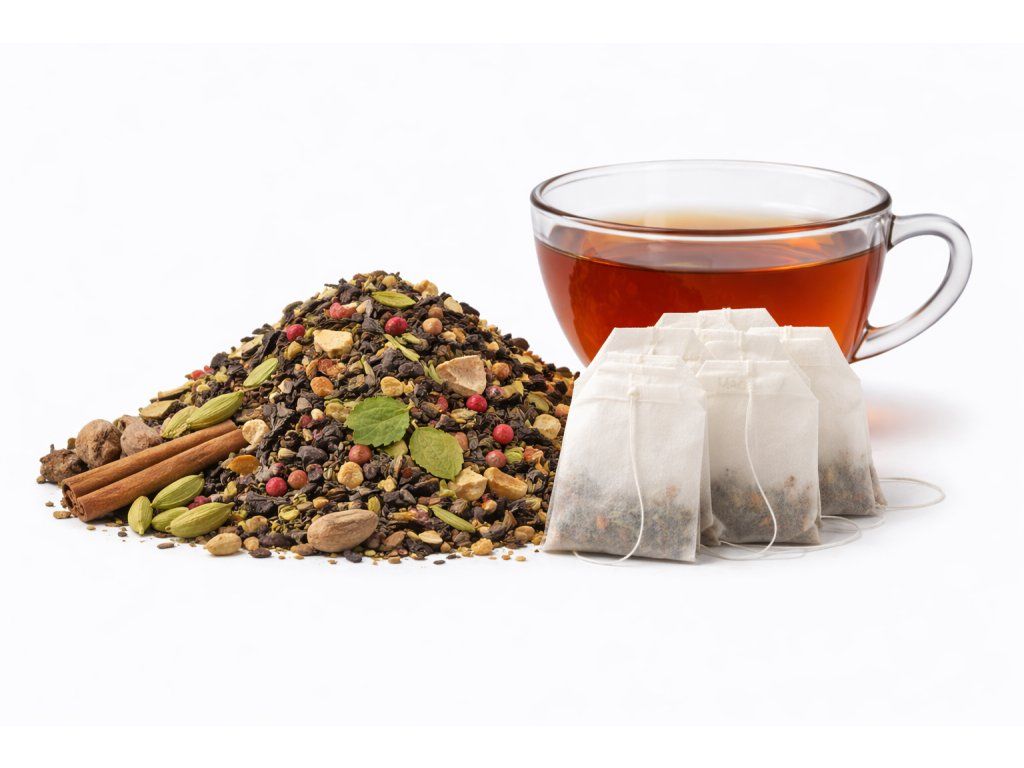 Nabízíme také jako ručně plněné čajové sáčky. Každý sáček obsahuje přibližně 1,5 g směsi a balíme je do doypacku (18 / 25 / 30 ks). Připravujeme ručně v malých dávkách v Novém Městě nad Metují – punc Handcrafted Blend™.