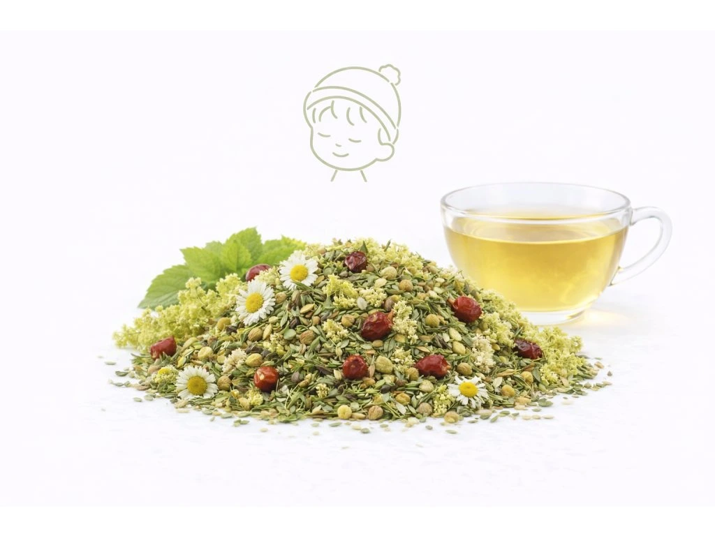 Směs jsme ladili s ohledem na dětskou citlivost – aby byla chuťově jemná, dobře snášená a srozumitelně podpořila přirozenou obranyschopnost v období nečasu. Sáhli jsme po bylinách, které rodiče znají a děti je obvykle dobře přijímají.