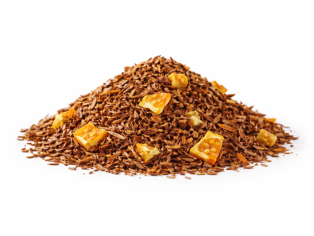 Červený rooibos pochází z listů keře Aspalathus linearis, rostoucího pouze v oblasti Cederberg v Jihoafrické republice. Díky lehké oxidaci má sytou červenou barvu, jemně ořechové aroma a nasládlou chuť. V této směsi je rooibos obohacen o přírodní pomerančové aroma, marakujový koncentrát a kousky ovoce, což mu dodává exotický a osvěžující charakter.