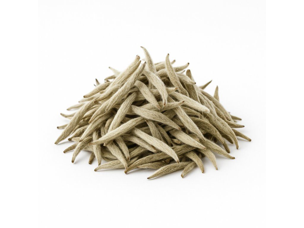 Jestli hledáte něco opravdu výjimečného, sáhněte po Stříbrné jehle. Tento bílý čaj patří mezi nejjemnější a nejdražší čaje světa – a zcela právem. Vyrábí se výhradně z mladých, stříbřitě ochmýřených pupenů čajovníku, které se ručně sbírají jen několik dní v roce.