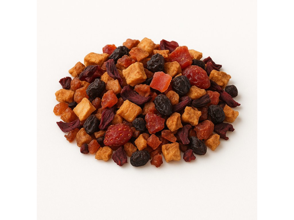 Svěží ovoce je směs, která spojuje přirozenou sladkost jablek s exotickou chutí kiwi a šťavnatým tónem pomeranče. Citronová tráva a měsíček dodávají lehkost a svěžest, zatímco růžová chrpa přináší jemně květinový nádech. Výsledkem je čaj, který voní po létě a chutná naprosto přirozeně.