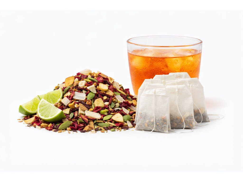 Kokosové chipsy dodají jemnou krémovost, kterou krásně vyvažuje svěžest limetky a ibišku. Kousky jablek přidají přirozenou ovocnost, moringa lehký zelený tón a stévie se postará o přirozenou sladkost bez cukru.