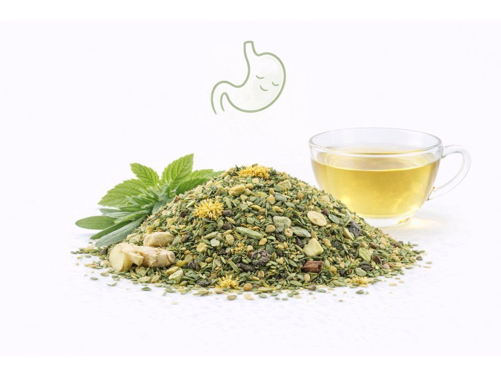 Fenykl obecný přispívá k normálnímu trávení a je ideálním společníkem při pocitu těžkosti. Máta kadeřavá přináší osvěžení a pomáhá udržet vnitřní rovnováhu. Šalvěj lékařská je tradičně spojována nejen s podporou trávení, ale i přirozené obranyschopnosti. O jemné zklidnění se stará meduňka, která zároveň dodává čaji svěží, lehce citrusový nádech. Jitrocel kopinatý harmonizuje střevní trakt a zázvor přináší lehký hřejivý tón.
