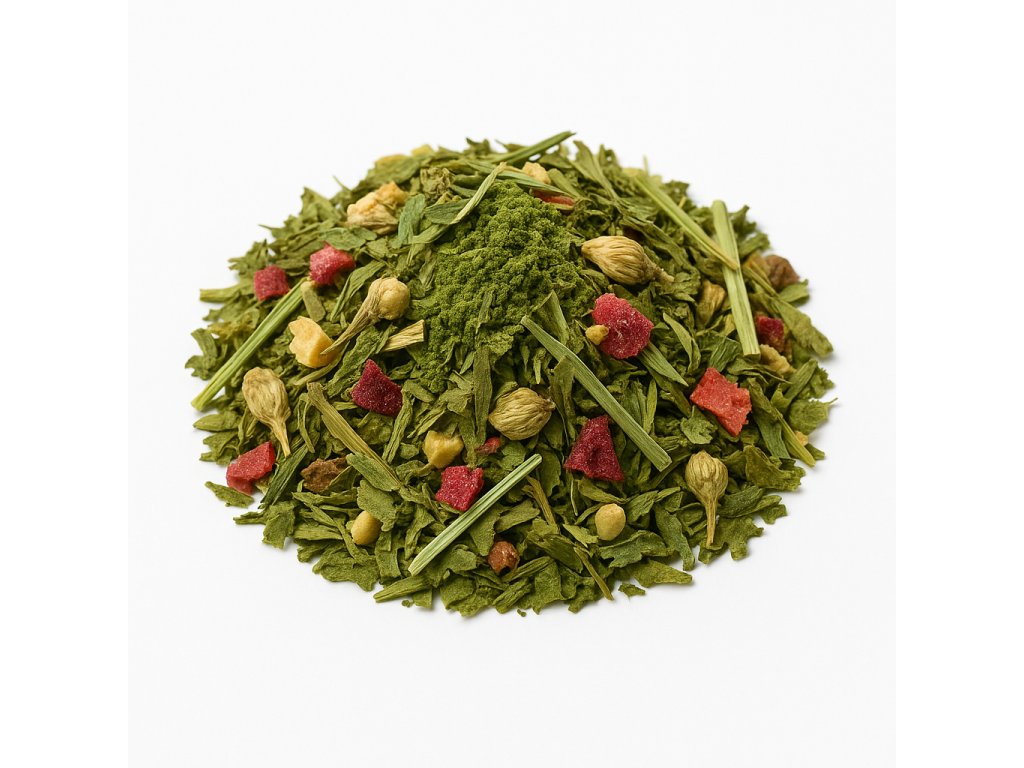 Slova nestačí. Travnatě svěží Matcha Hana se tu potkává se zemitě nasládlou macou, sametovou hloubkou cordycepsu a pikantní jiskrou zázvoru. Výsledkem je harmonický šálek s čistou, energickou chutí a smaragdově zeleným nálevem.